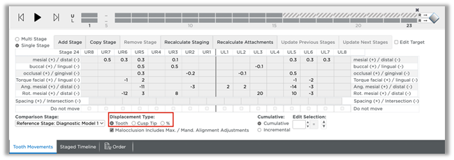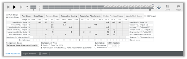 - Incremental – The tooth movements of each stage show the amount of movement planned between the previous stage and the current stage.