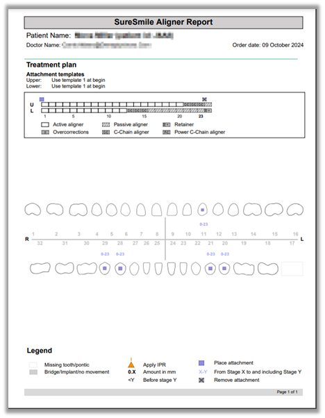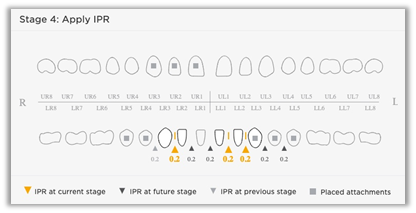 The Aligner report shows the timing and placement of IPR. It also shows when to add and remove attachments. It is only available for Aligner orders; it is not available for 3D prints or STL exports.